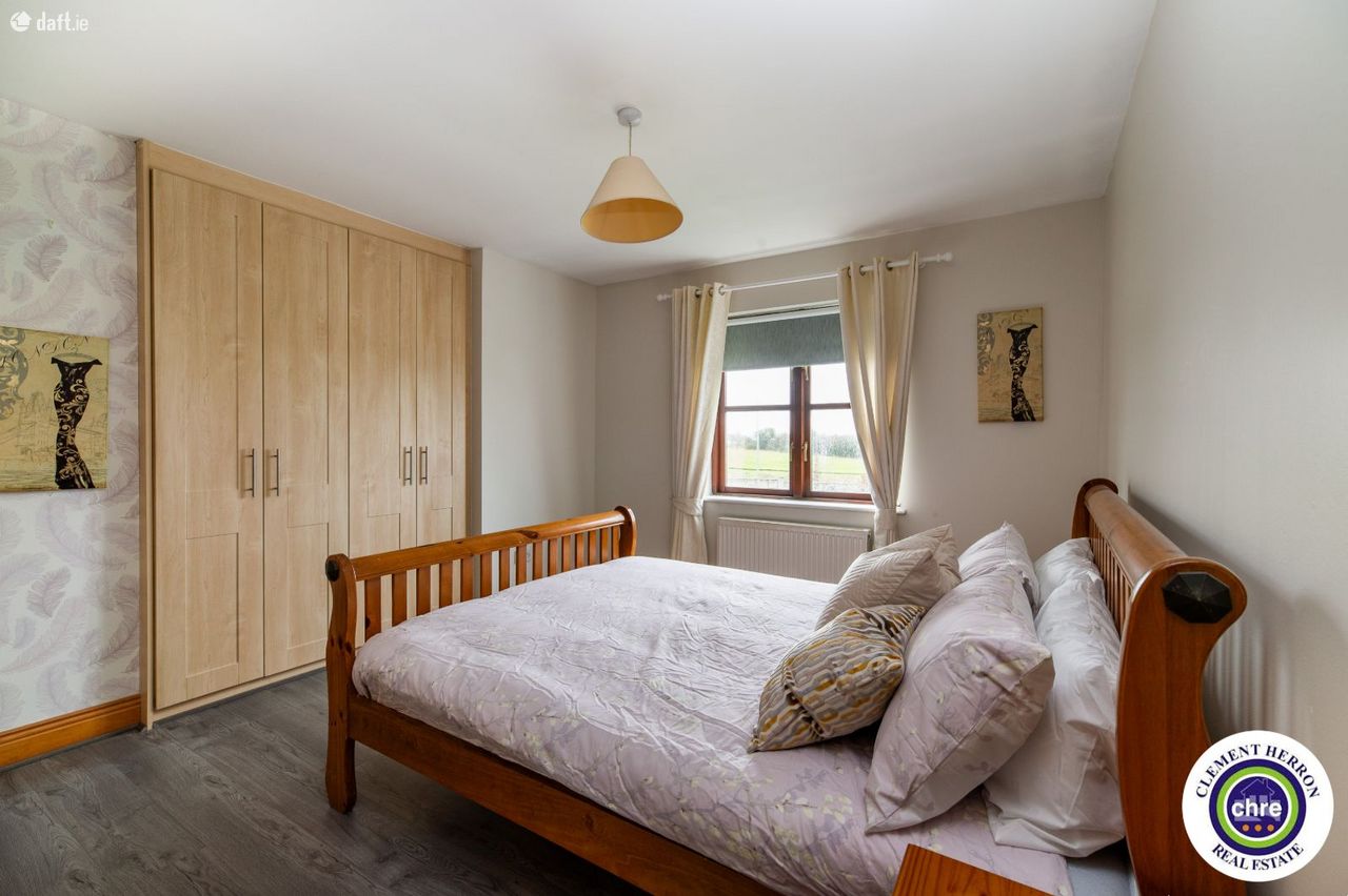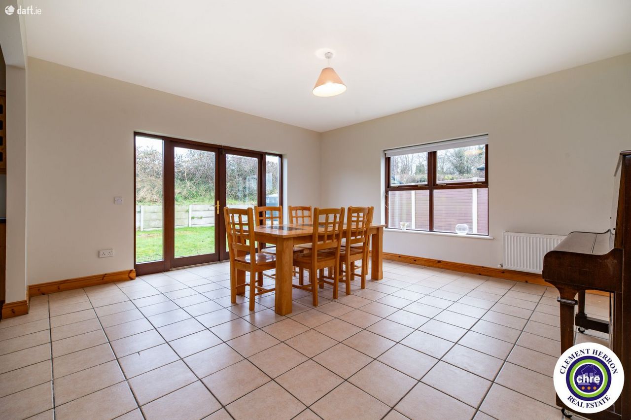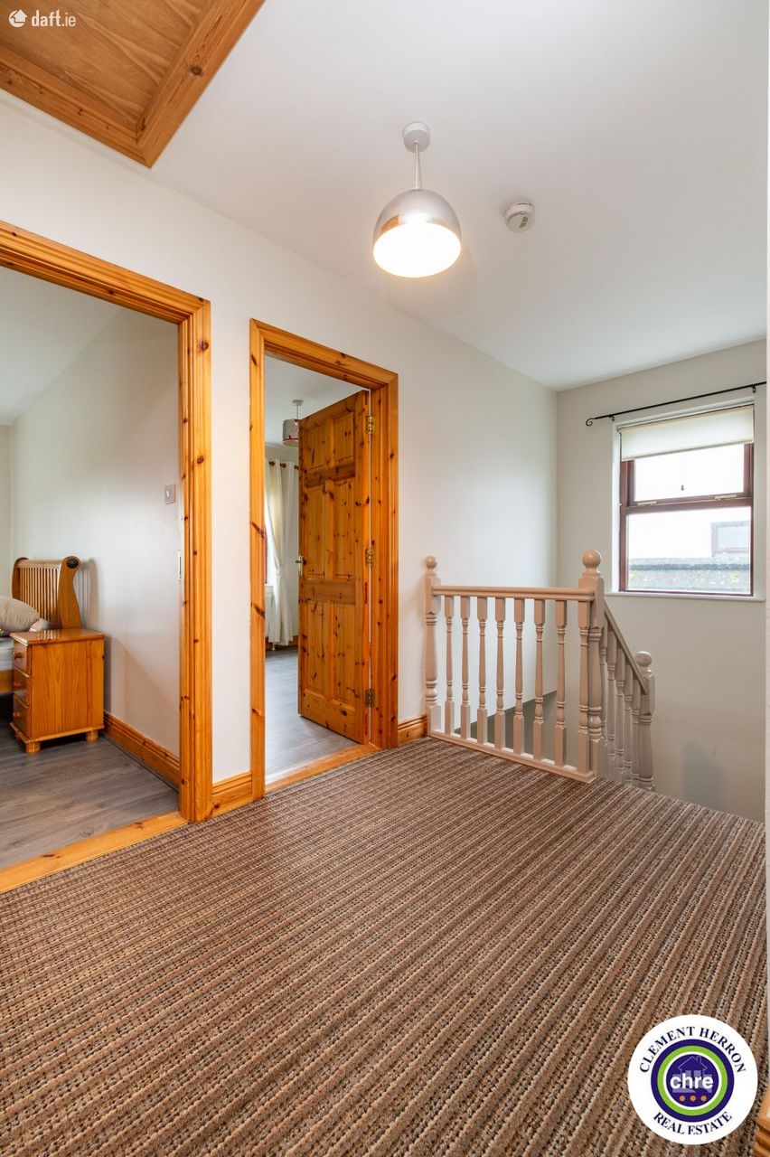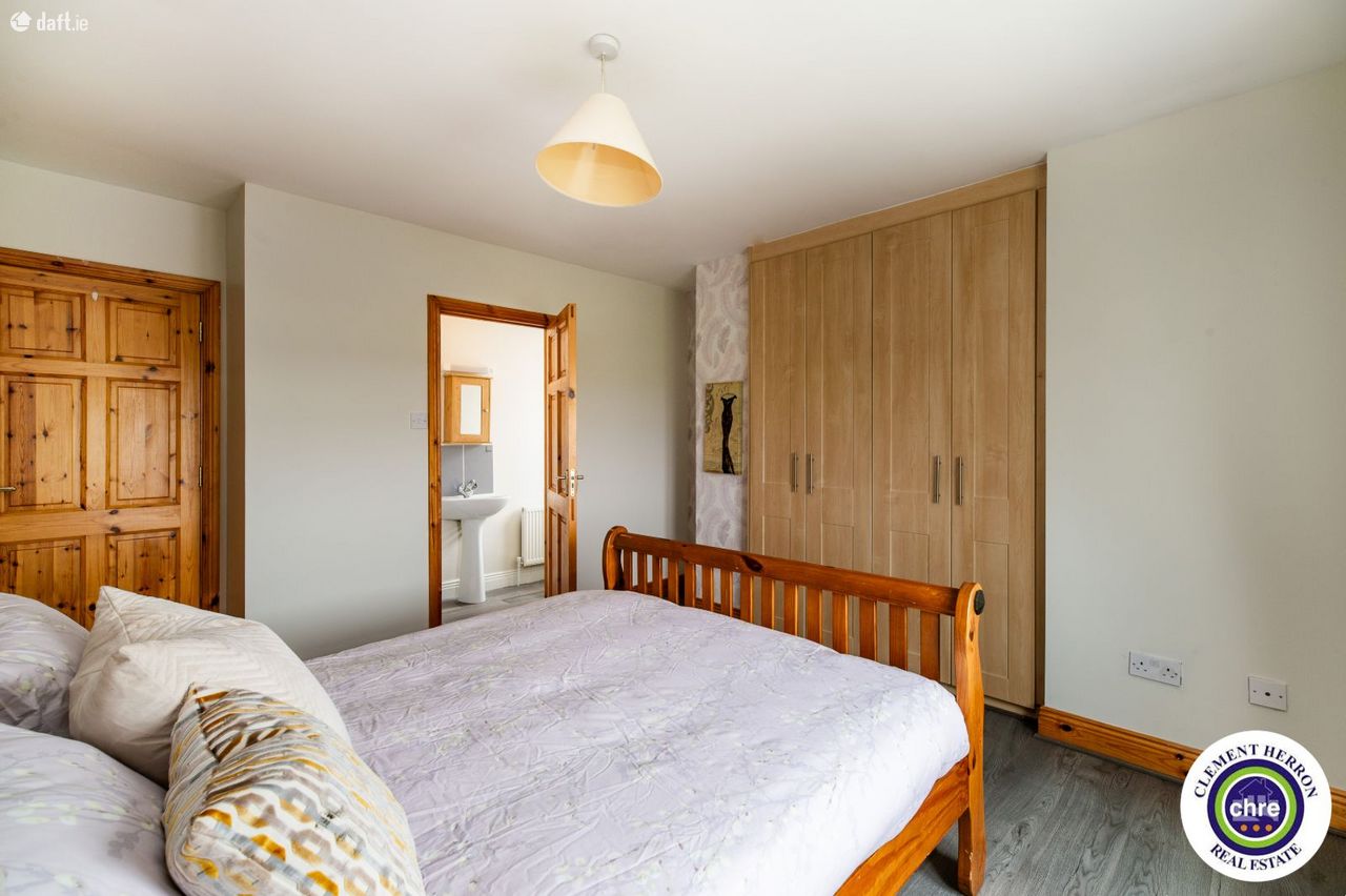 Clement Herron is delighted to present No. 4 Glenbrook, a superb four-bedroom, three-bathroom detached home located in the charming village of Ballyroan, Co. Laois. This spacious 1,700 sq. ft. property, constructed in 2006, offers an excellent opportunity for families seeking comfort, convenience, and a welcoming community. Ballyroan is a picturesque and peaceful village, ideally situated close to Portlaoise and Abbeyleix. It boasts a strong sense of community with fantastic local amenities, including a primary school, creche, church, and GAA club, all within walking distance. Heywood Community School, a well-regarded secondary school, is just 6 km away. With easy access to major road networks, Ballyroan offers the perfect balance between rural tranquillity and modern convenience. This home is in excellent condition throughout and has been freshly painted inside and out for the new owners. The well-designed accommodation includes a bright and spacious entrance hall, sitting room, kitchen/dining room, office/playroom, utility room, and downstairs w.c. on the ground floor. The first floor features four generous double bedrooms, one with an en-suite and built-in wardrobes, along with a main bathroom. The property features off-street parking, gated side access, and a private rear garden, offering both convenience and privacy. Set in a peaceful location, it also enjoys lovely countryside views, enhancing its charm and tranquillity. With its spacious layout and prime location, this home is a fantastic opportunity for a growing family seeking comfort and quality living. Accommodation: Entrance Hall: 2.14m x 2.14 Tiled flooring, access to garage Sitting Room: 4.63m x 5.12m Timber flooring, open fire, bay window Kitchen: 3.62m x 3.71m Tiled flooring and splash, fitted kitchen with appliances, dual aspect, blinds Dining Room: 4.63m 4.98m Tiled flooring, blinds, French doors, blinds Office/Playroom 2.41m x 2.95 Carpet Utility: 1.93m x 3.51m Tiled flooring and splash area, sink, rear door for garden access Downstairs w.c: 1.93m x 1.44m Tiled flooring and splash area, w.c., w.h.b. Pantry: 1.38m x1.24m Tiled flooring and shelving Landing: 2.34m x 2.59m Half turn staircase, carpet Master Bedroom: 4.03m x 4.34m Timber flooring, built in wardrobes, blinds. En-suite: 2.86m x 0.89 Tiled flooring and splash, w.c., w.h.b., electric shower Bedroom 2: 4.05m x 3.08m Timber flooring, blinds. Bedroom 3: 2.72m 3.71 Timber flooring, blinds. Bedroom 4: 2.75m 3.14m Timber flooring, blinds. Garage: 3.41m x 2.95m Carpet