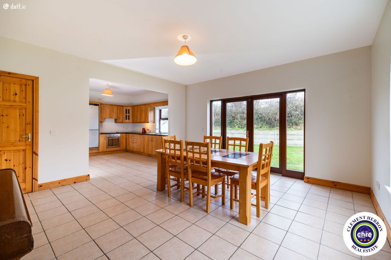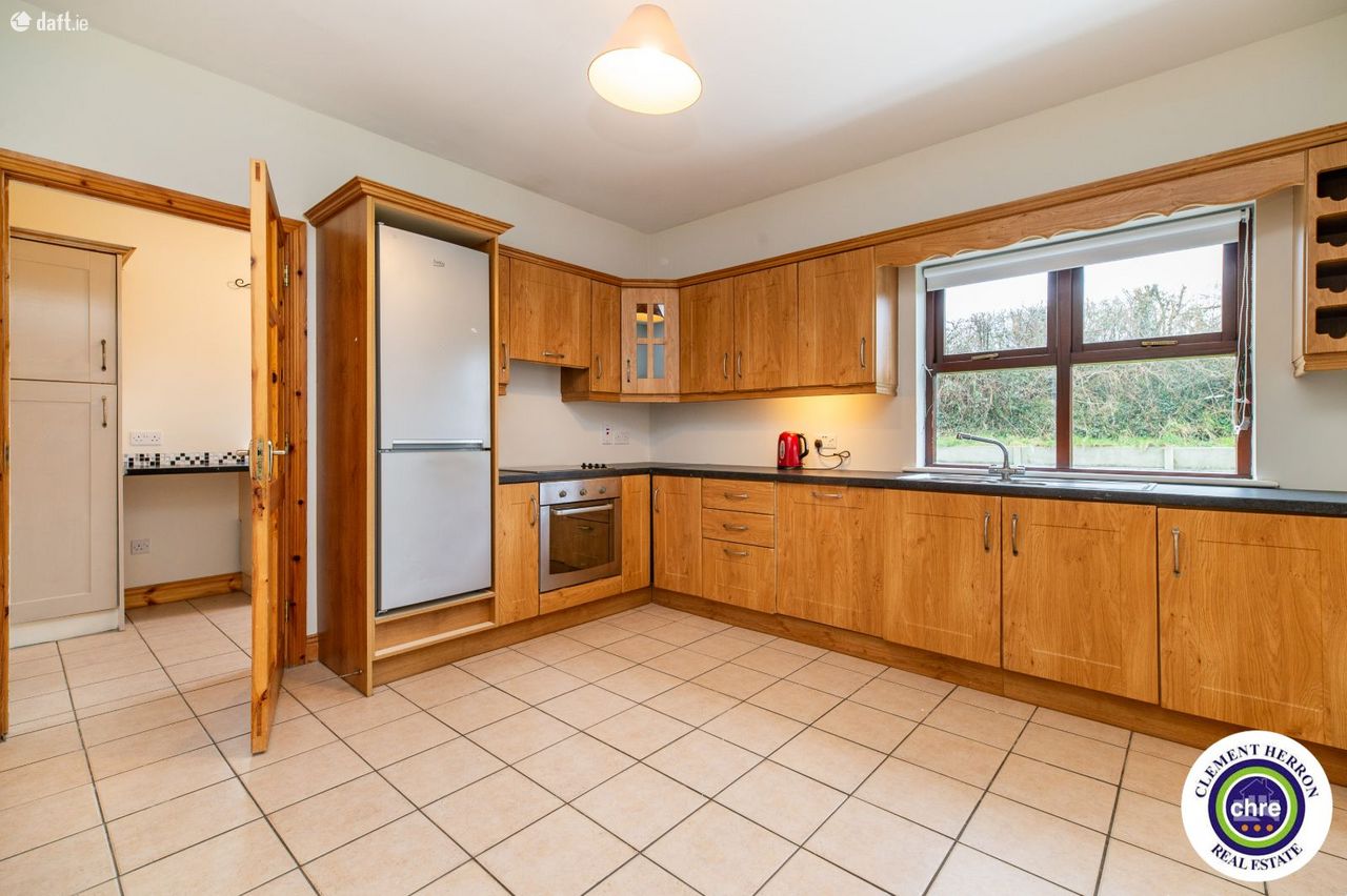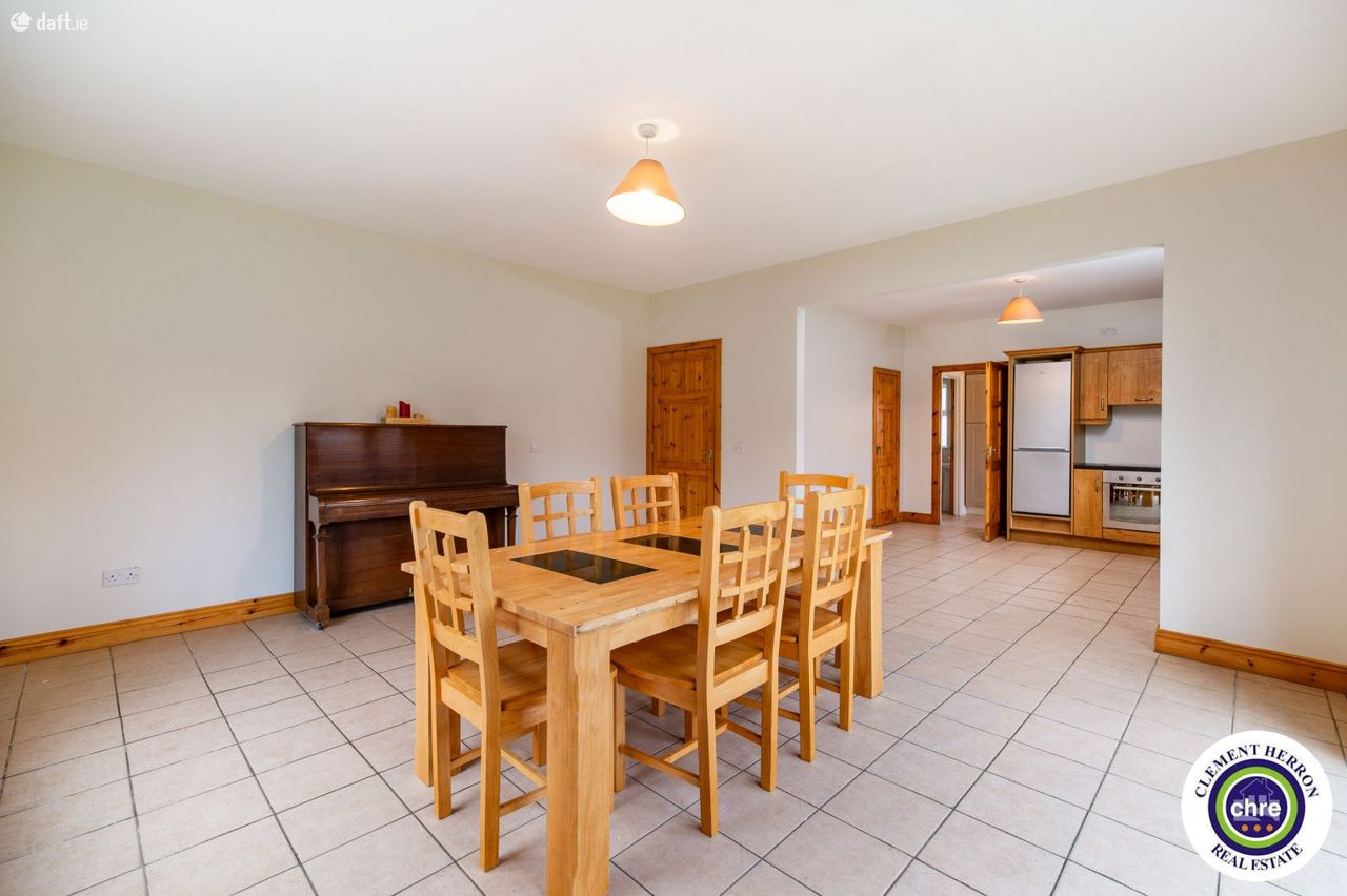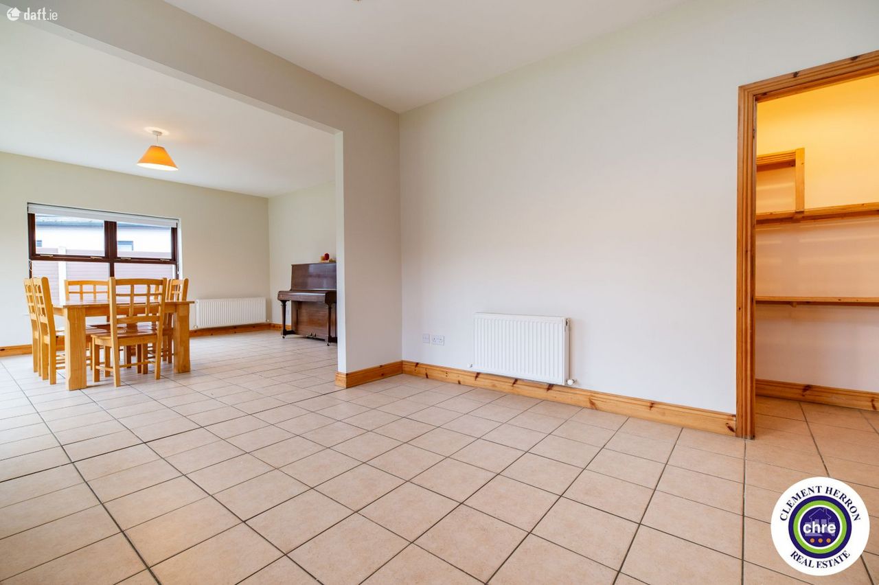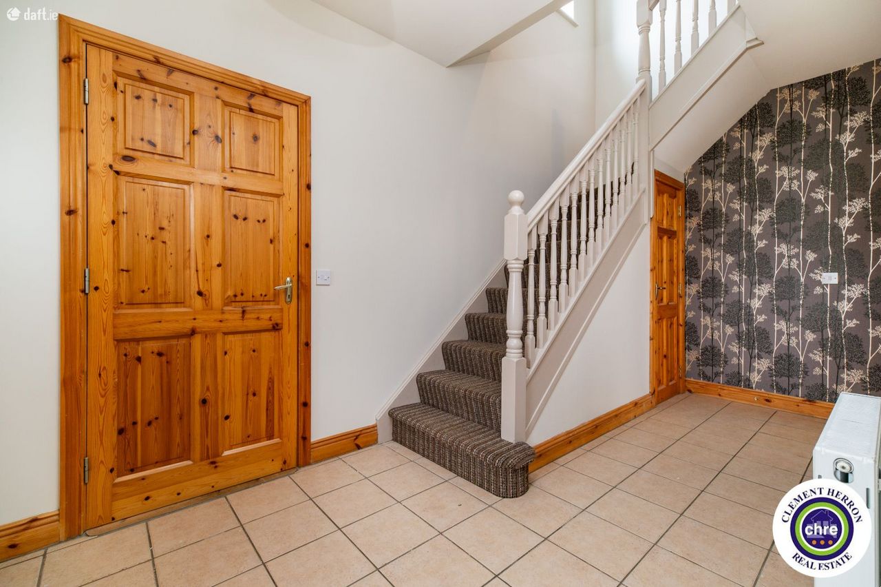 Clement Herron is delighted to present No. 4 Glenbrook, a superb four-bedroom, three-bathroom detached home located in the charming village of Ballyroan, Co. Laois. This spacious 1,700 sq. ft. property, constructed in 2006, offers an excellent opportunity for families seeking comfort, convenience, and a welcoming community. Ballyroan is a picturesque and peaceful village, ideally situated close to Portlaoise and Abbeyleix. It boasts a strong sense of community with fantastic local amenities, including a primary school, creche, church, and GAA club, all within walking distance. Heywood Community School, a well-regarded secondary school, is just 6 km away. With easy access to major road networks, Ballyroan offers the perfect balance between rural tranquillity and modern convenience. This home is in excellent condition throughout and has been freshly painted inside and out for the new owners. The well-designed accommodation includes a bright and spacious entrance hall, sitting room, kitchen/dining room, office/playroom, utility room, and downstairs w.c. on the ground floor. The first floor features four generous double bedrooms, one with an en-suite and built-in wardrobes, along with a main bathroom. The property features off-street parking, gated side access, and a private rear garden, offering both convenience and privacy. Set in a peaceful location, it also enjoys lovely countryside views, enhancing its charm and tranquillity. With its spacious layout and prime location, this home is a fantastic opportunity for a growing family seeking comfort and quality living. Accommodation: Entrance Hall: 2.14m x 2.14 Tiled flooring, access to garage Sitting Room: 4.63m x 5.12m Timber flooring, open fire, bay window Kitchen: 3.62m x 3.71m Tiled flooring and splash, fitted kitchen with appliances, dual aspect, blinds Dining Room: 4.63m 4.98m Tiled flooring, blinds, French doors, blinds Office/Playroom 2.41m x 2.95 Carpet Utility: 1.93m x 3.51m Tiled flooring and splash area, sink, rear door for garden access Downstairs w.c: 1.93m x 1.44m Tiled flooring and splash area, w.c., w.h.b. Pantry: 1.38m x1.24m Tiled flooring and shelving Landing: 2.34m x 2.59m Half turn staircase, carpet Master Bedroom: 4.03m x 4.34m Timber flooring, built in wardrobes, blinds. En-suite: 2.86m x 0.89 Tiled flooring and splash, w.c., w.h.b., electric shower Bedroom 2: 4.05m x 3.08m Timber flooring, blinds. Bedroom 3: 2.72m 3.71 Timber flooring, blinds. Bedroom 4: 2.75m 3.14m Timber flooring, blinds. Garage: 3.41m x 2.95m Carpet
